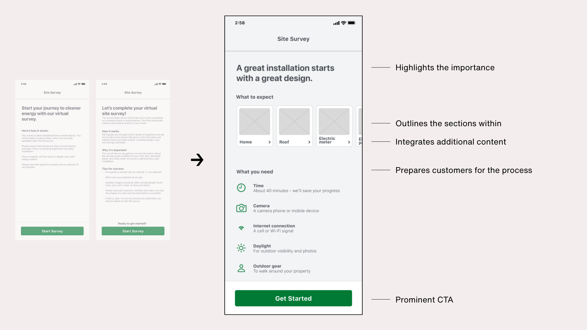 The goal was to reduce unnecessary costs by eliminating the need for an on-site solar survey. However, completion rates were low and often lacked the detail required, resulting in delays, errors, and frustration for teams and customers.